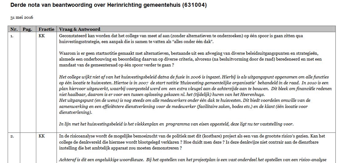 verbouwing van het gemeentehuis zouden worden gestopt. Voor het
