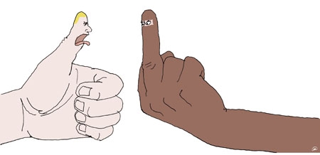 en botsende wereldbeelden op tafel komen. De ongemakkelijkheid wordt versterkt