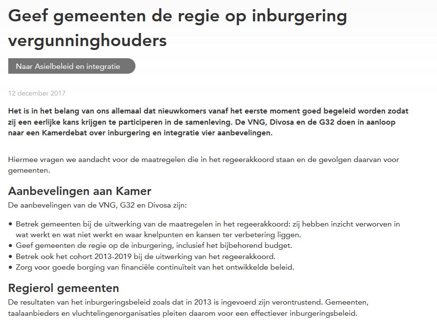 op het inburgeringstraject van nieuwkomers. Daarin staan we niet alleen. Lokaal
