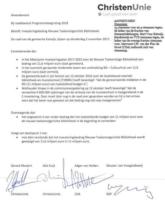 ChristenUnie waarin besloten werd dat de nieuwe bibliotheekvestiging niet meer